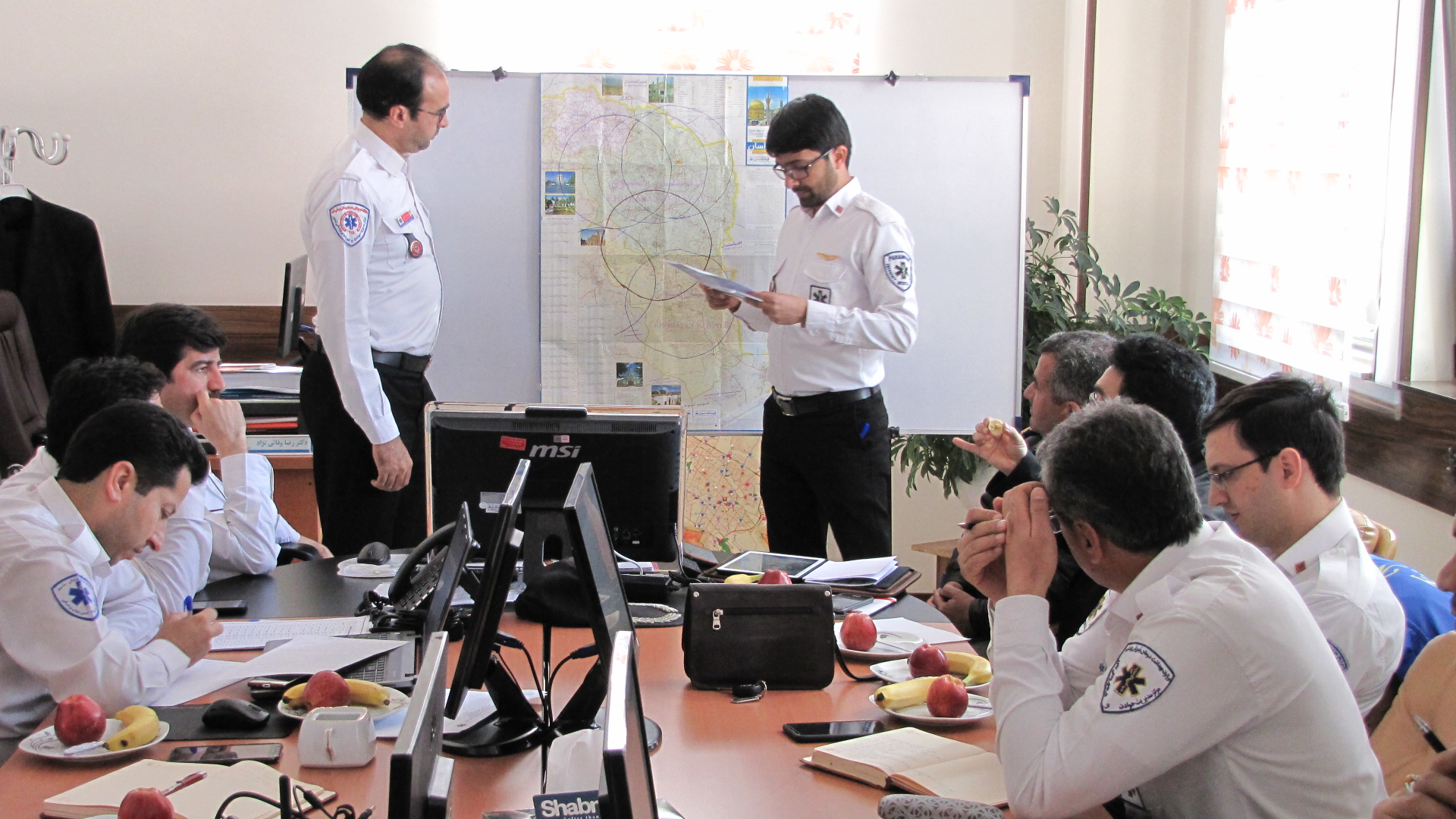 در ادامه جلسه جهت اولویت بندی درخواست اعزام توسط شهرستانهای استان خراسان رضوی از پایگاههای اورژانس هوایی دانشگاهها و دانشکده های علومپزشکی استان و نحوه ثبت و پیگیری درخواست اعزام از طریق MCMCو EOCو انتقال بیمار به بیمارستانهای مراکز و تعیین مکان های فرود اورژانس هوایی کارشناسی لازم انجام گردید