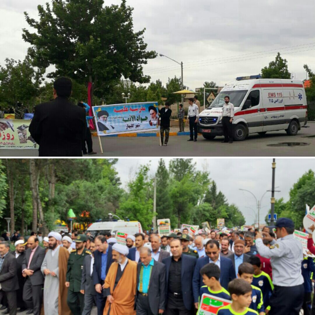 در این راهپیمایی شرکت کنندگان با شعار "مرگ بر آمريكا" و "مرگ بر اسراييل" انزجار خود را از رژيم غاصب و جعلي اسرائيل و همه حاميان آنها اعلام نمودند و ضمن اعلام حمايت از مردم مظلوم فلسطين بار ديگر با آرمانهاي امام راحل و مقام معظم رهبري بيعت كردند.