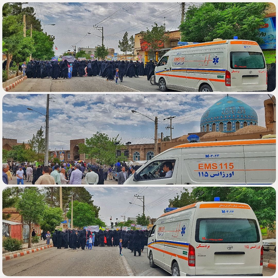 دراين راهپيمايي كاركنان حوزه فوریتهای پزشکی در کنار مسئولین و مدیران و سایر پرسنل دانشگاه، با حضوري پرشور و گسترده ضمن حمایت قاطعانه از مردم مظلوم فلسطین، نابودی رژیم جنایتکار صهیونیستی را فریاد زدند.