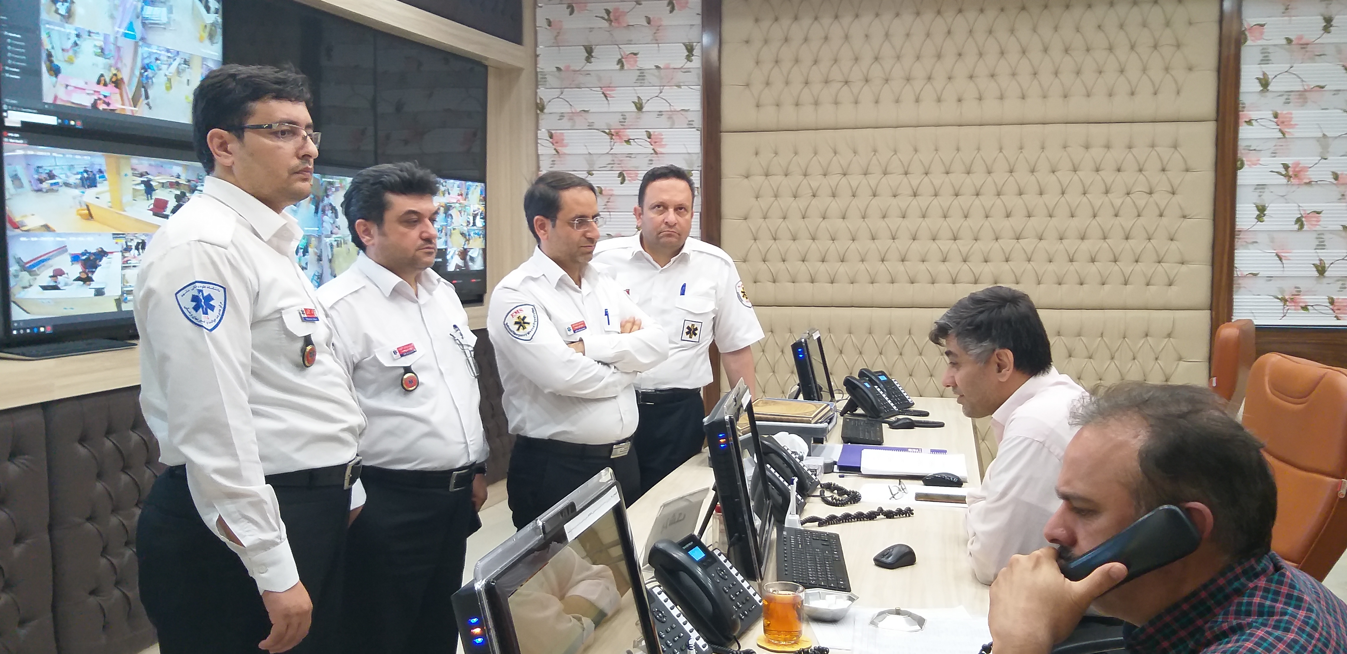 آقای دکتر نوری معاون عملیات سازمان اورژانس کشور و هیات همراه در حاشیه برگزاری کارگاه کشوری تربیت مدرس تروما در مشهد از ساختمان مدیریت حوادث و فوریتهای پزشکی و مرکز فرماندهی عملیات و EOC و MCMC بازدید و انجام فرایند های کاری و امکانات و نواوری های انجام شده در مرکز مدیریت حوادث و فوریتهای پزشکی مشهد را بسیار خوب ارزیابی کردند